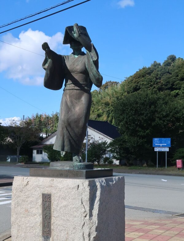 静かな上陸は、カモメと佐渡おけさ像のお出迎え。