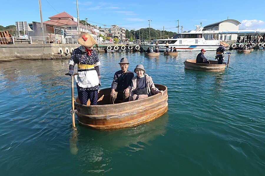 ‟♪ ゆらゆらゆら たらい舟ゆれて・・(男の背中)の替え唄。佐渡を象徴する「たらい舟」は元来サザエやアワビなどの漁のために考案されたもので、島内の3か所で乗船体験ができる。また佐渡の尖閣湾は約3キロの海岸に広がる5つの小湾の総称で、沖縄の尖閣諸島とは異なる。佐渡歴史伝説館も興味深く学ぶところは多い。