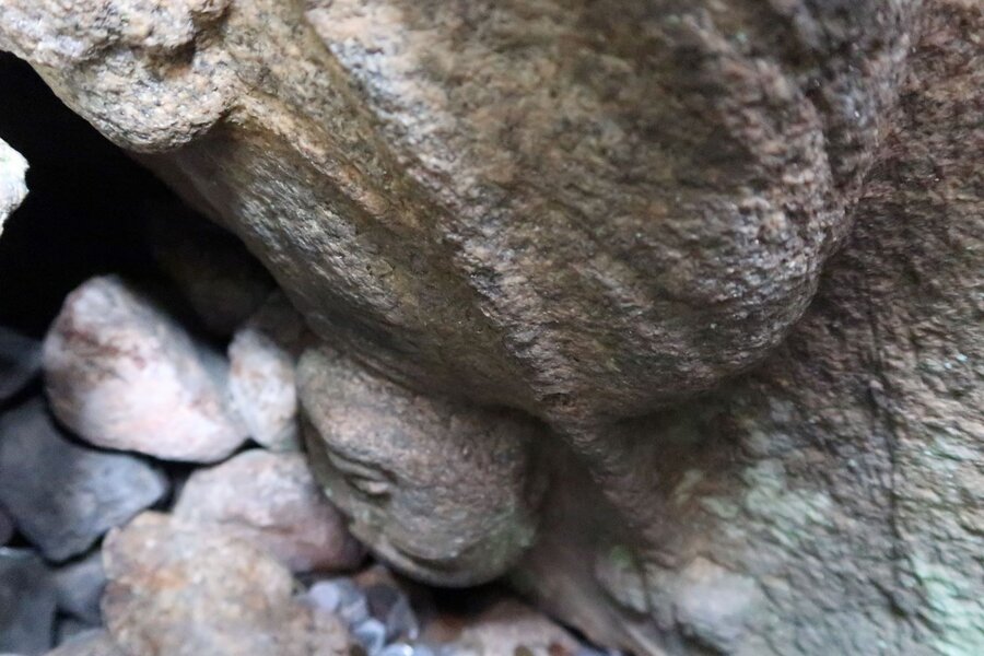 来年の大河ドラマは「豊臣兄弟!」、秀吉の弟・秀長が主人公で兄弟の絆を描く物語です。 秀長の居城だった大和郡山城跡を訪ねましたが、話題の「逆さ地蔵」も健在でした。写真の通り石垣の築石として転用された地蔵尊は、頭部を下にして積まれていて「逆さ地蔵」と呼ばれています。