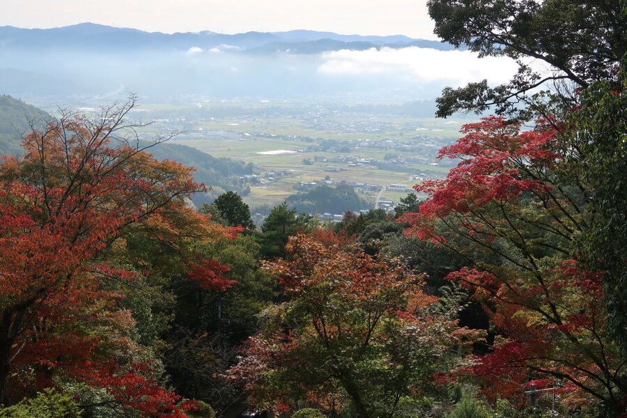 「鐘楼門」から亀岡盆地が眼下に一望。
