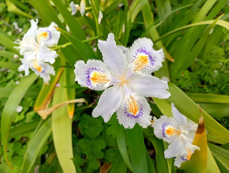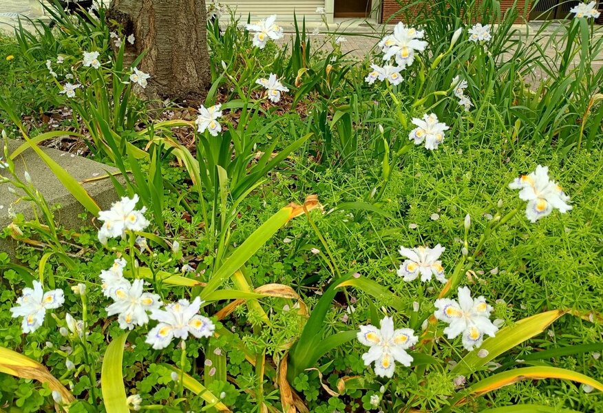 「胡蝶花」の別名の通り、あたかも胡蝶が舞うような姿の可憐な花である。茎の先には直径5~6cmのアヤメに似た花をつける。この欄でご紹介ずみながら、綾部市にある木漏れ日に照らされた数十万株の白い花が森を埋め尽くす「シャガの群生地」が懐かしい。