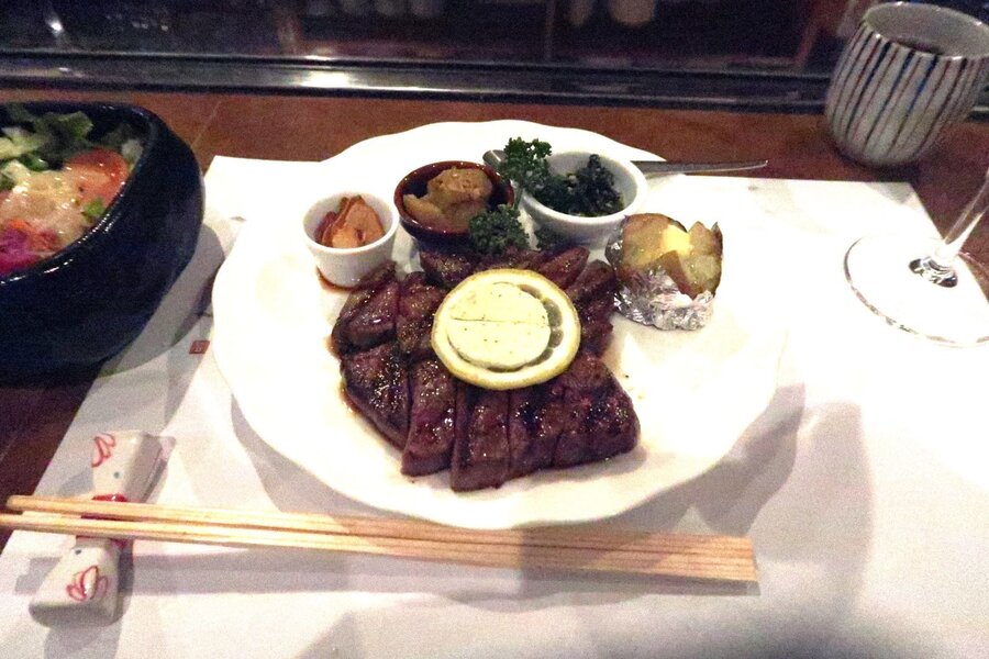 カウンター席で、ステーキランチを頂く。